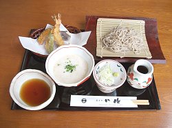 | おすすめ | 牧之原市特産の自然薯のとろろ汁。旨い蕎麦の条件、挽きたて・打ちたて・茹でたて(三たて)の風味豊かな蕎麦と、厳選された鴨の美味しさを凝縮した鴨付け汁。季節に応じ、内容を変えるサクサク揚げたての天ぷら。その3点を組み合わせた「天鴨膳せいろ」が、当店自慢の一押しメニューです。 | |